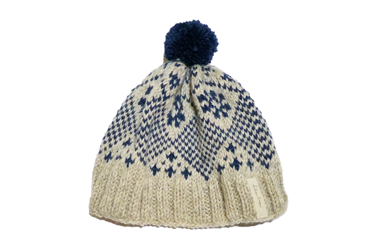 雪がしんしんと降り、粉のようにあたり一面を埋めていく。街が雪に包まれていく様子をフェアアイルニットにしました。